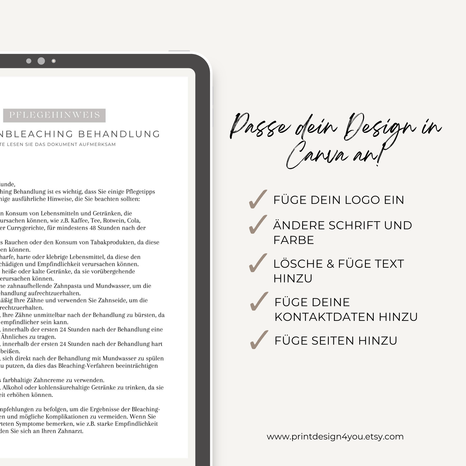 Ideal für Zahnärzt:innen, Kosmetiker:innen und Beauty-Profis, die ihren Kund:innen eine professionelle, verständliche und nachhaltige Nachsorge rund um das Thema Zahnaufhellung bieten möchten.